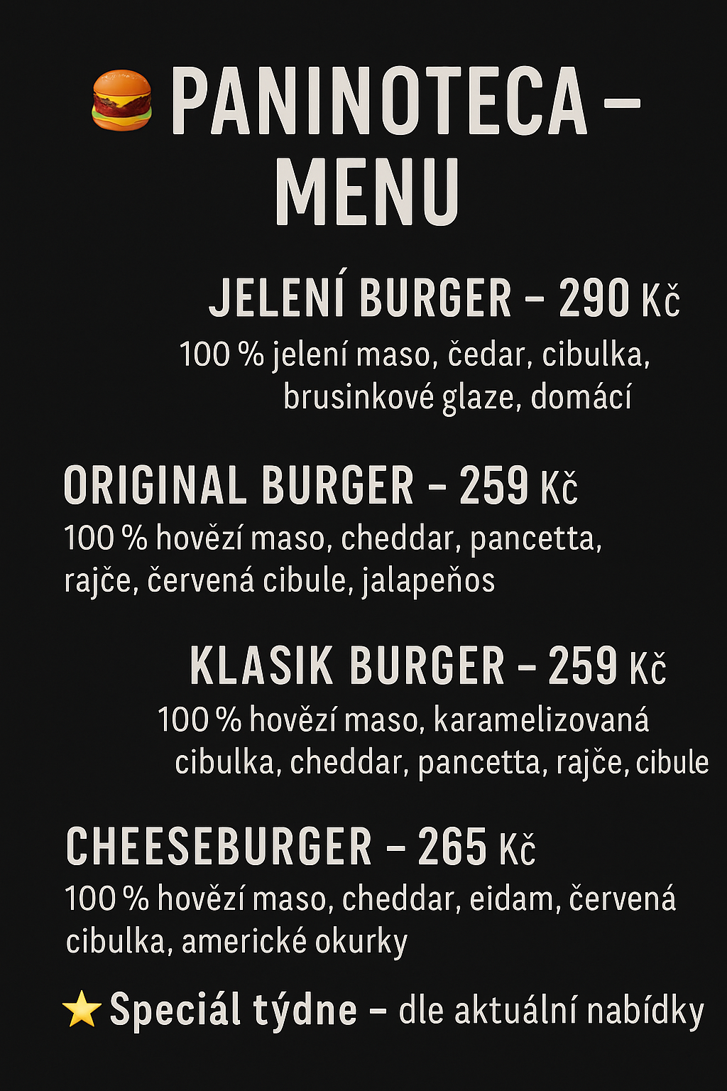 Vítejte v místě, kde burgery a panini chutnají nejlépe v Klatovech!